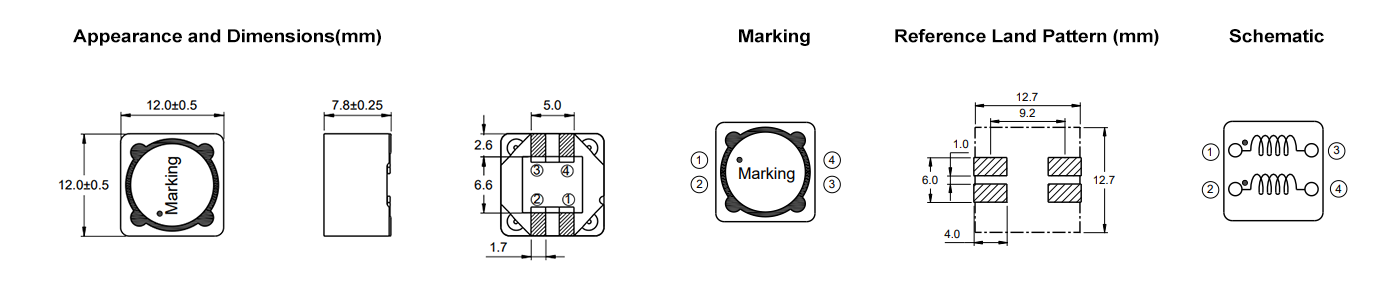 • 温升电流:使产品温度上升到ΔT40℃时所加载的实际直流电流值(Ta=25℃)。