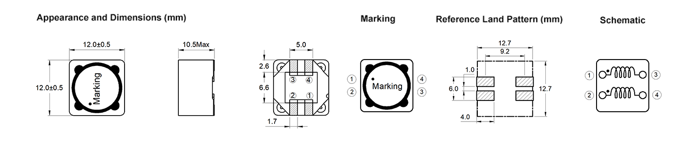 - 温升电流:使产品温度上升到ΔT40℃时所加载的实际直流电流值(Ta=25℃)。