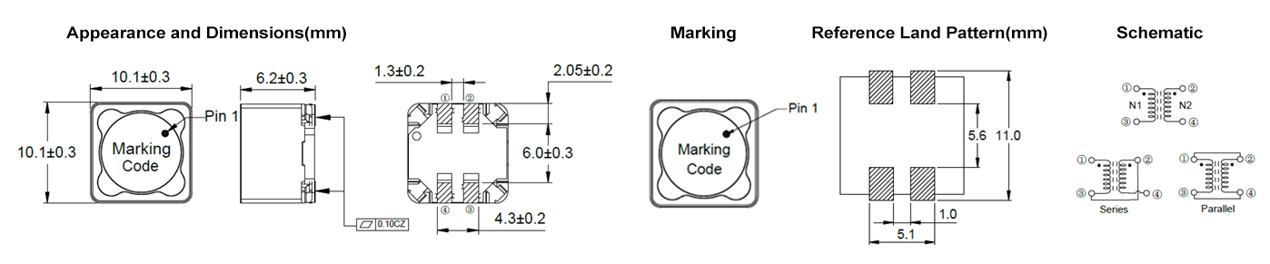 - 温升电流:使产品温度上升到ΔT40℃时所加载的实际直流电流值(Ta=25℃)。