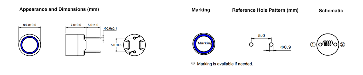 - 电感测试条件为100KHz,1V。