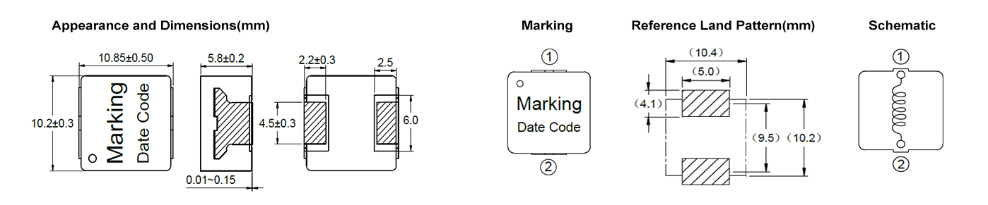 - 电感测试条件为100KHz,1V。