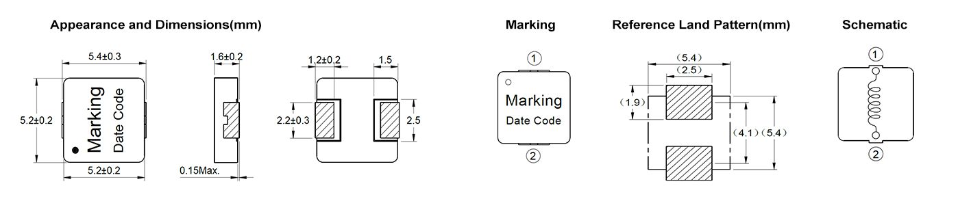 - 温升电流:使产品温度上升到ΔT40℃时所加载的实际直流电流值(Ta=25℃)。