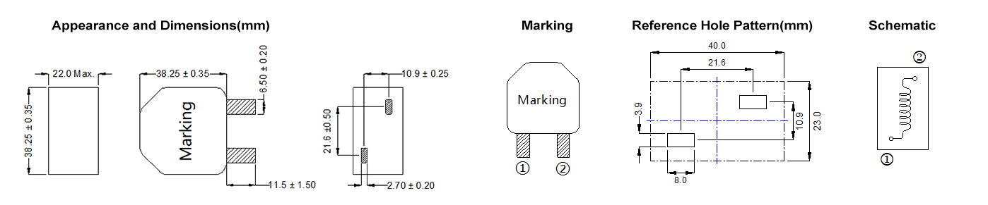 • 电感测试条件为100KHz,1V。
