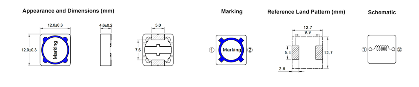 - 电感测试条件为100KHz,1V。