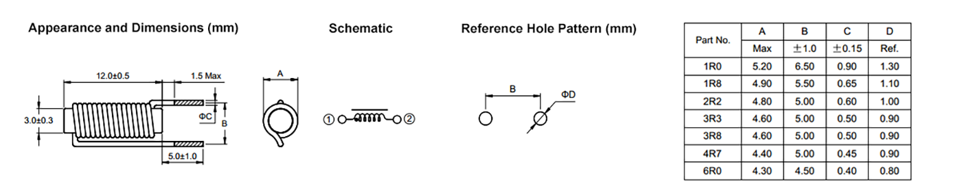 • 温升电流:使产品温度上升到ΔT40℃时所加载的实际直流电流值(Ta=25℃)。