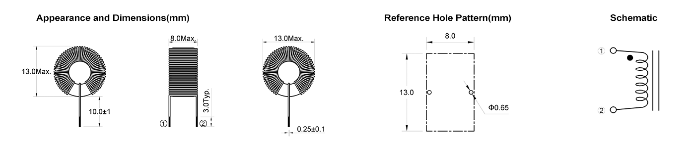 温升电流:使产品温度上升到ΔT40℃时所加载的实际直流电流值(Ta=25℃)。