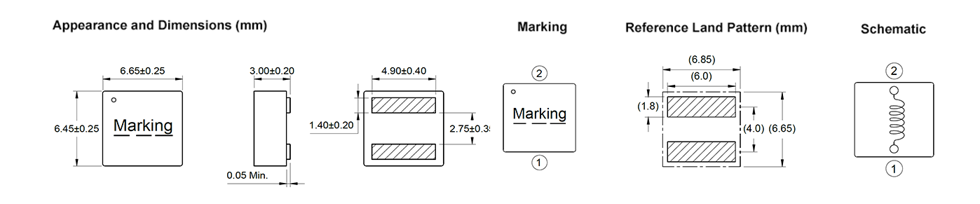 - 温升电流:使产品温度上升到ΔT40℃时所加载的实际直流电流值(Ta=25℃)。