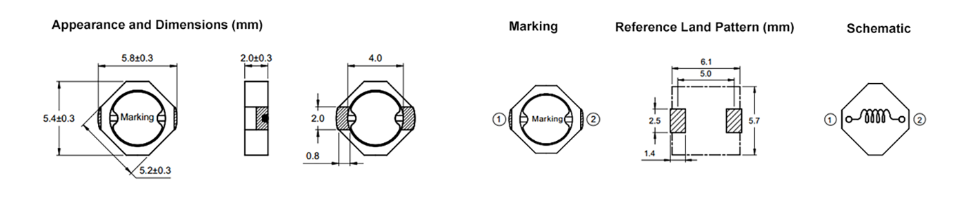 - 电感测试条件为100KHz,1V。