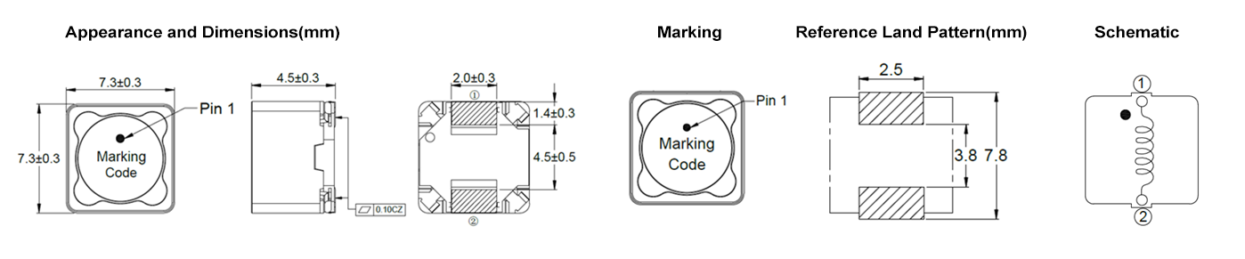 • 电感测试条件为100KHz,1V。