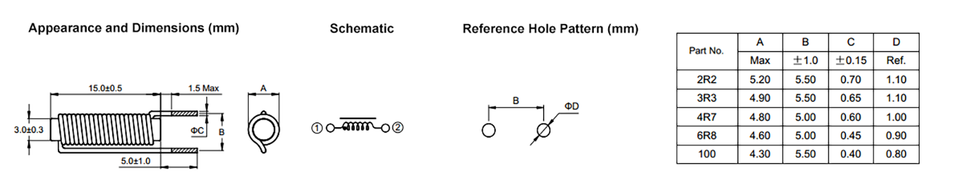 • 温升电流:使产品温度上升到ΔT40℃时所加载的实际直流电流值(Ta=25℃)。